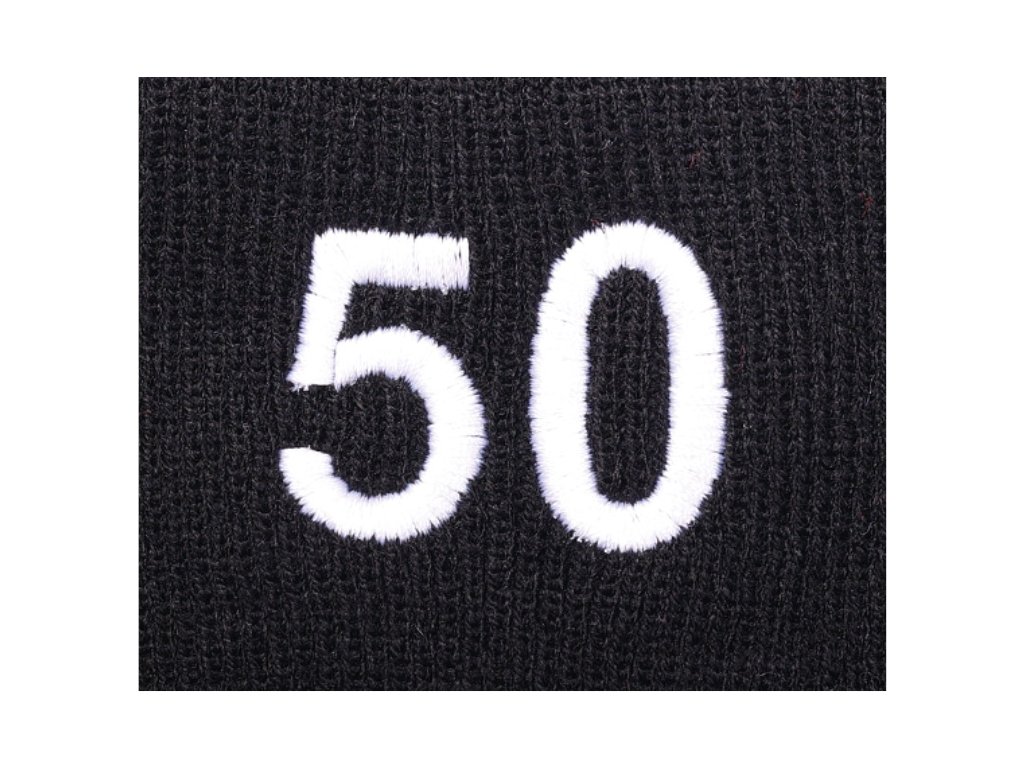 Dvojitá pletená čepice PLETEX s lemem. Černá s výšivkou - číslo 50.